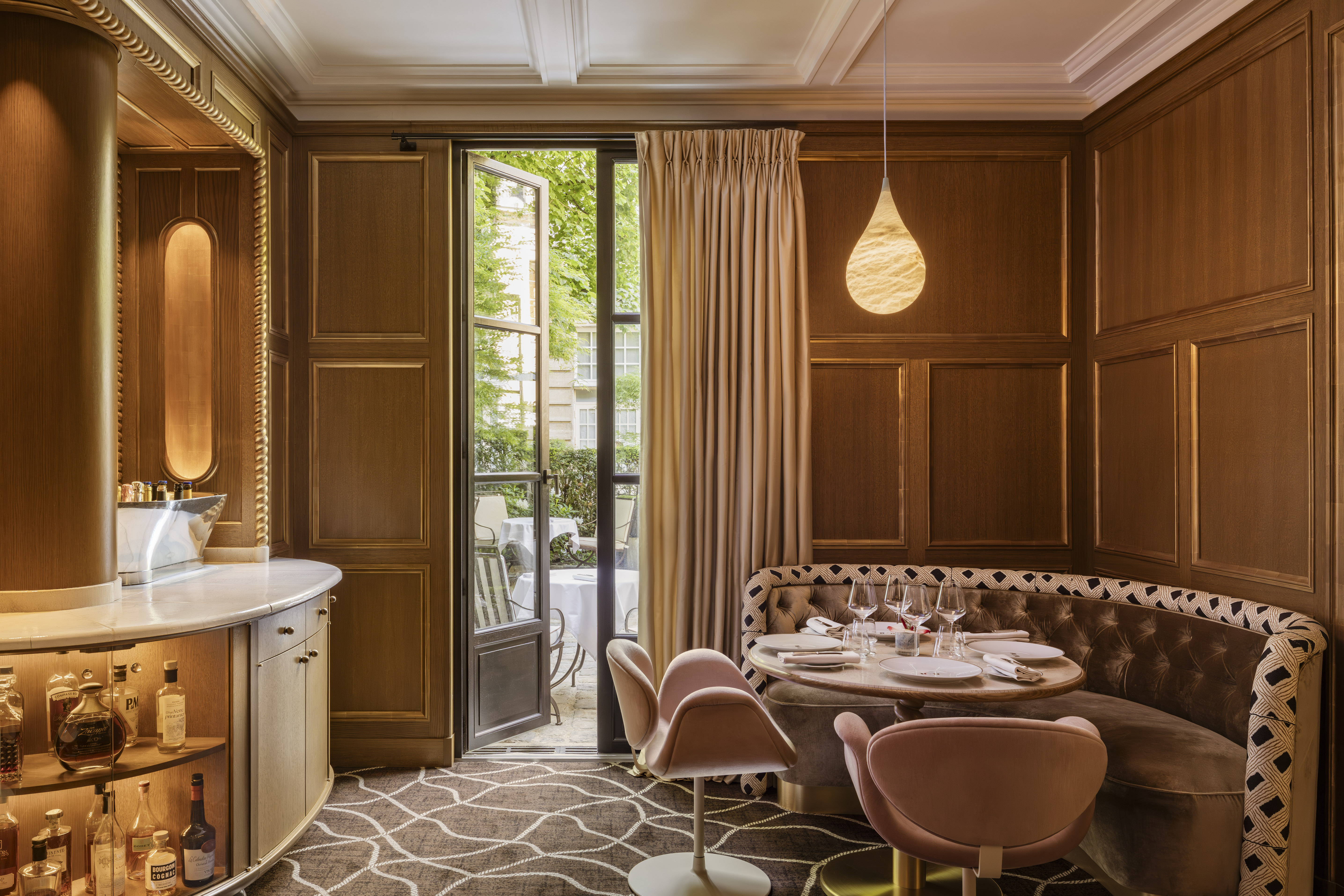 Situé sur la Place des Vosges, dans le Marais, son jardin à l'abri des regards indiscrets est un havre de paix.